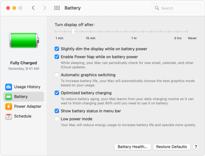 man pmsetThis seemed to be working until…. bedtime came, and my Mac asked me